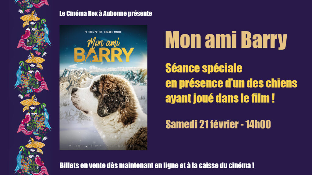 La séance du samedi 21 février à 14h00 aura lieu en présence d’un des chiens Saint-Bernard ayant incarné Barry dans le film. Venez le rencontrer ! Les billets pour cette séance exceptionnelle sont disponibles dès maintenant.